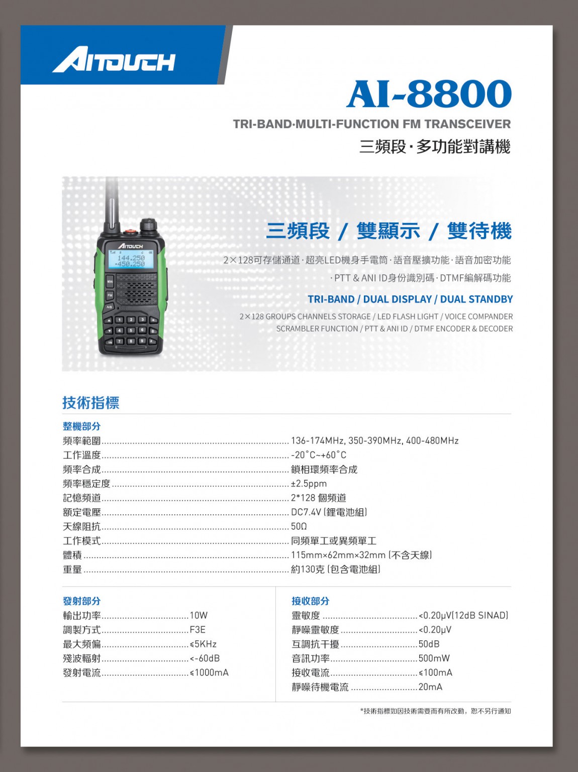 | .頻率範圍 | U,V雙段 |
