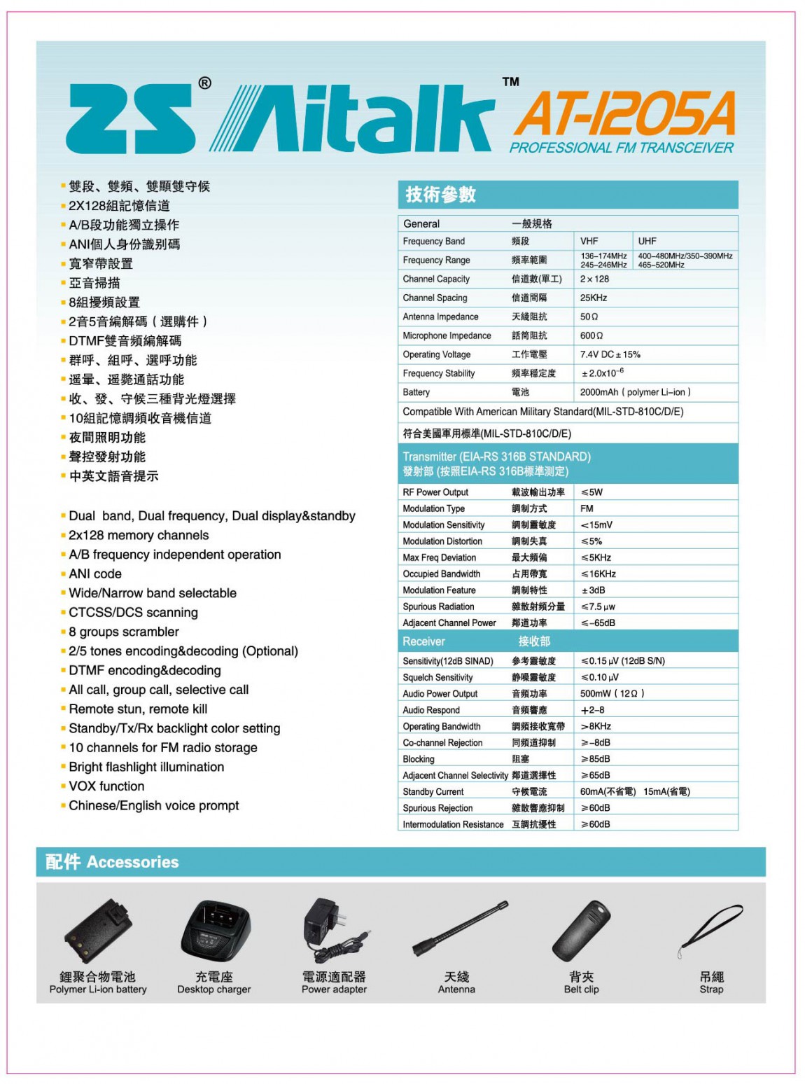 | .頻率範圍 | U,V雙段 |