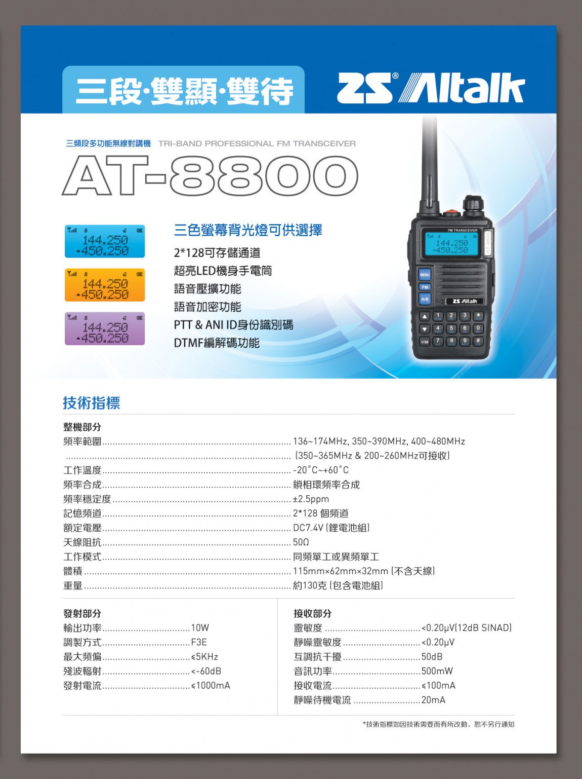 | .頻率範圍 | U,V雙段 |